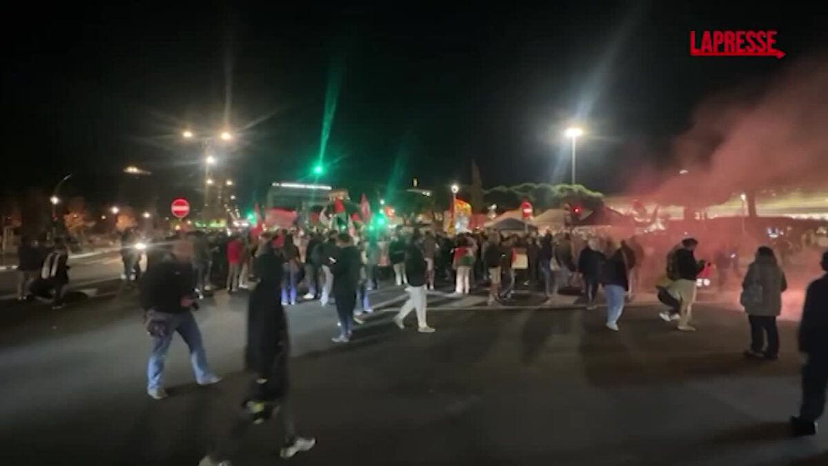 Il presidio permanente di piazza dei Cinquecento a Roma ha bloccato le strade di fronte alla stazione Termini, in solidarietà alla Global Sumud Flotilla, che sta subendo l’abbordaggio dell’Idf. Uno striscione recita ‘Rompere con Israele. Blocchiamo tutto. Stop Genocide’, richiamando lo sciopero generale indetto per venerdì 3 ottobre. Chiusi tutti gli accessi alla stazione Termini di Roma, dove si sono radunati attivisti proPal in segno di solidarietà alla Flotilla. All’interno possono entrare solo i viaggiatori muniti di biglietti.