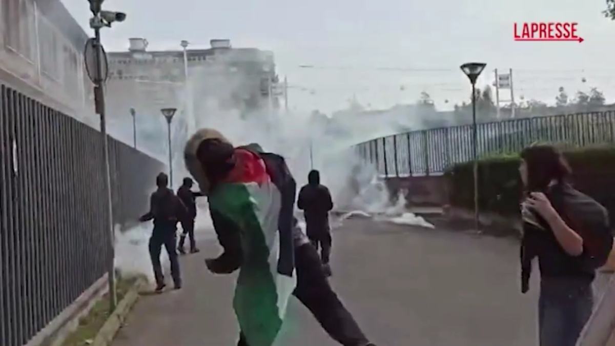 I dimostranti hanno cercato di sfondare il blocco delle forze dell’ordine e hanno lanciato fumogeni verso gli agenti che hanno risposto con lacrimogeni. Un centinaio circa i manifestanti che si sono staccati dal corteo principale e hanno cercato di scavalcare la recinzione per raggiungere il Politecnico: il dispositivo di sicurezza ha fatto partire cariche di alleggerimento disperdendo i manifestanti che hanno iniziato a defluire.