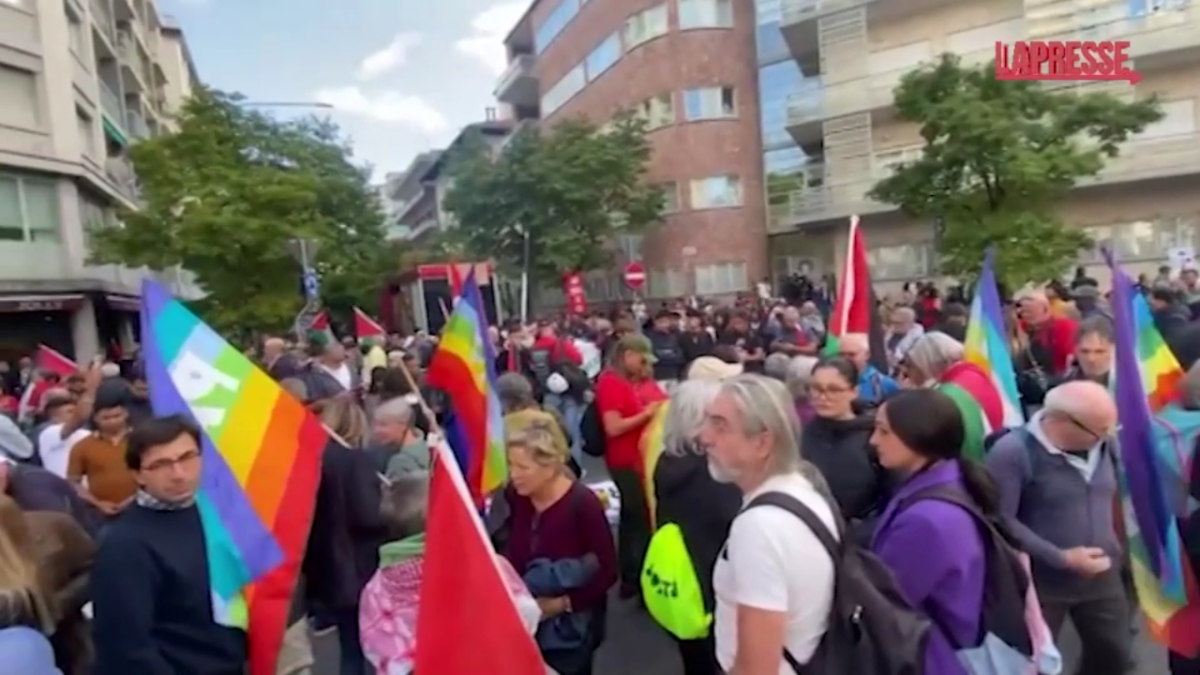 A Udine manifestanti pro Pal in piazza a poche ore da Italia-Israele, la sfida valida per le qualificazioni ai prossimi Mondiali di calcio. “Nessuno è libero finché la Palestina non sarà libera” si legge su uno striscione nel corteo.