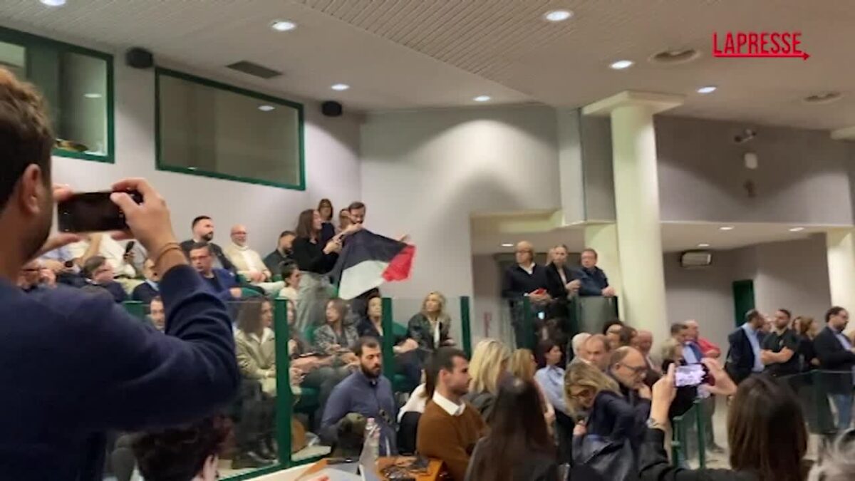 Incursione Pro Pal durante il Consiglio regionale delle Marche. La prima seduta è stata aperta poco fa da Andrea Cardilli (FdI) come presidente provvisorio in attesa dell’elezione, durante la seduta in corso, di quello effettivo. Durante i saluti e la presentazione di consiglieri e assessori un’attivista Pro Pal è intervenuta dal pubblico sventolando una bandiera della Palestina e chiedendo che la Regione Marche di interrompere “i rapporti con Israele” e che “venga riconosciuto lo Stato palestinese”. L’attivista che ha proseguito durante l’intervento del presidente protempore è stata accompagnata fuori dall’aula dal personale della vigilanza presente nell’emiciclo di Palazzo Leopardi in Ancona. Intanto, fuori dalla sede della Regione, è presente un picchetto del Coordinamento Marche per la Palestina.