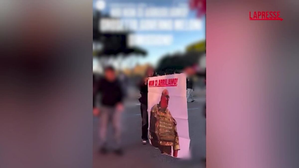 Da quanto si apprende dal monitoraggio web del Comando Provinciale dei Carabinieri di Roma, nel corso della manifestazione di oggi 29 novembre nella Capitale contro la manovra di bilancio e per la Palestina, alcuni esponenti del movimento studentesco universitario ‘Cambiare Rotta’ hanno dato fuoco a una bandiera statunitense e a un manifesto raffigurante il ministro della Difesa, Guido Crosetto, e la scritta “non ci arruoliamo”. Il video è stato postato sui social proprio da ‘Cambiare Rotta’. Pochi giorni fa Crosetto aveva annunciato di voler proporre un disegno di legge per reintrodurre la leva militare in Italia su base volontaria.