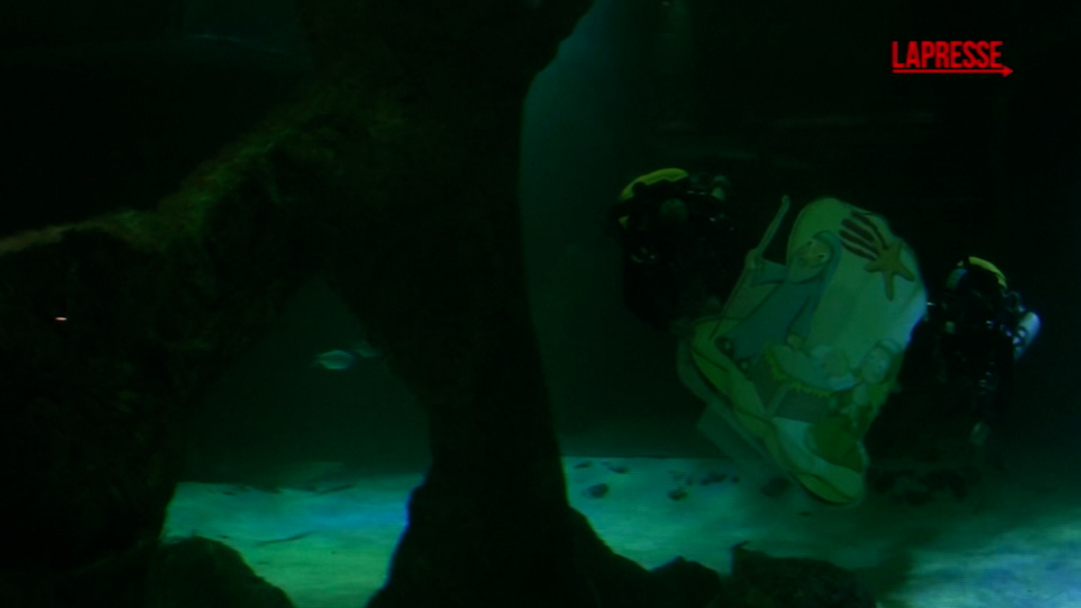 Due subacquei dello zoo di Madrid, in Spagna, hanno allestito un presepe di Natale sott’acqua mentre gli squali nuotavano accanto a loro. Hanno posizionato le statuine di Gesù Bambino, Maria e Giuseppe nella vasca dell’acquario, di 10.000 litri, che ospita una grande varietà di pesci, tra cui uno squalo toro. Il presepe è diventato una tradizione del parco che lo allestisce ogni anno dal 1995.