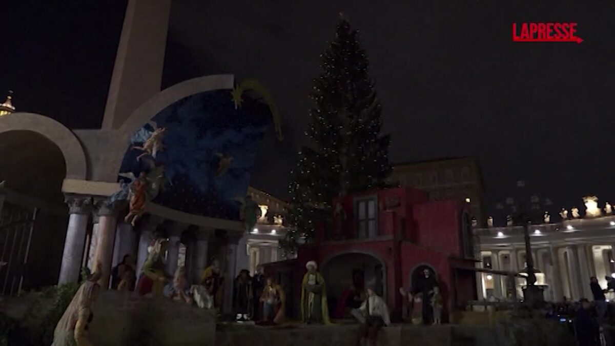 Sono stati inaugurati il presepe e l’albero di Natale in Piazza San Pietro. Alla cerimonia era presente, tra gli altri, la Presidente del Governatorato dello Stato della Città del Vaticano suor Raffaella Petrini e le Delegazioni ufficiali dei luoghi di origine del Presepe e dell’albero, provenienti rispettivamente da Lagundo e Ultimo, nella diocesi di Bolzano-Bressanone, e dalla diocesi di Nocera Inferiore-Sarno.