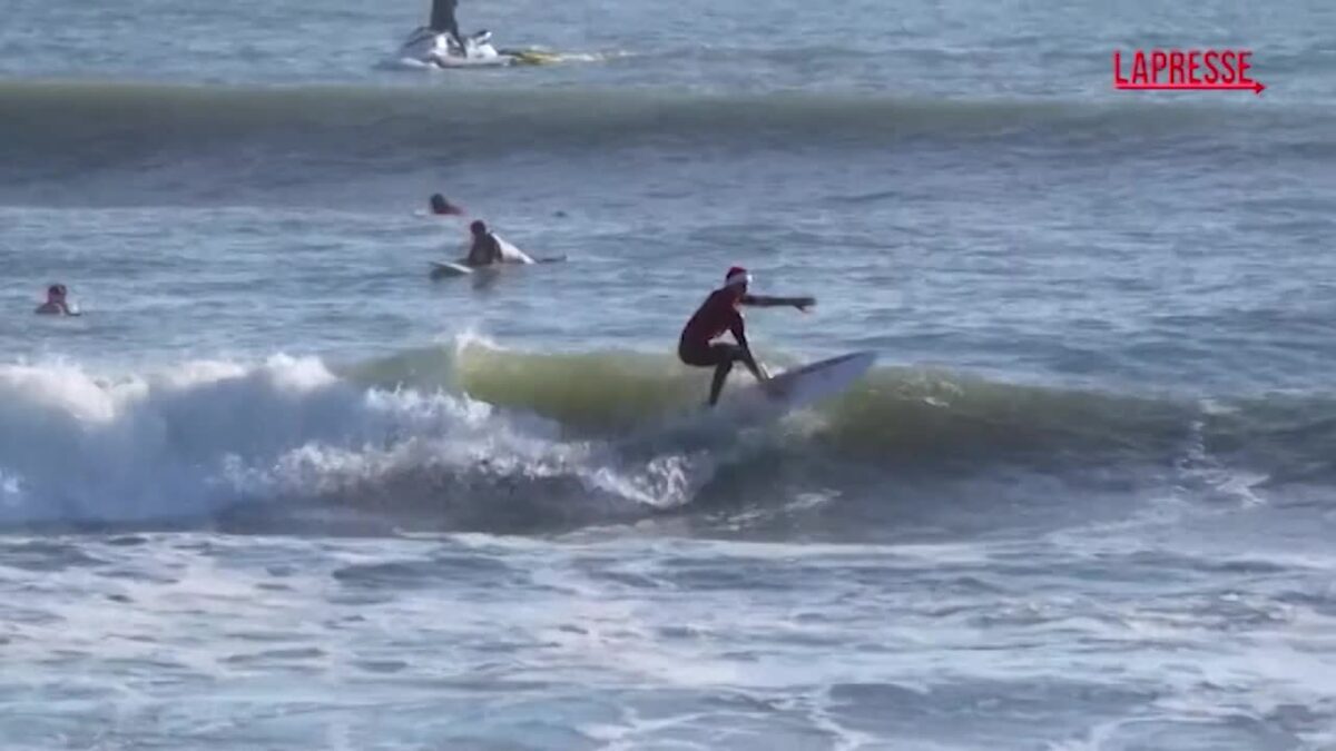 Mercoledì, lungo la Space Coast della Florida, Babbo Natale non è saltato sulle slitte, ma sulle tavole da surf. Centinaia di surfisti vestiti da Babbo Natale si sono lanciati sulle onde di Cocoa Beach in quella che è diventata una tradizione annuale che dura ormai da 17 anni. Il surf di Babbo Natale ha attirato sulla spiaggia spettatori in costume natalizio, che hanno ballato al ritmo di musica dal vivo e hanno partecipato a un concorso di costumi natalizi. L’evento raccoglie fondi per il Florida Surf Museum e un’organizzazione no-profit che aiuta le persone affette da cancro.