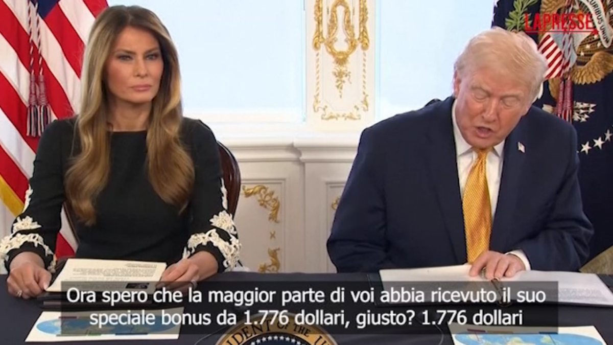 Il presidente degli Stati Uniti Donald Trump e la First Lady Melania Trump hanno augurato un felice Natale ai militari. “Spero che ormai la maggior parte di voi abbia ricevuto il suo speciale bonus da 1.776 dollari”, ha detto il presidente da Palm Beach, in Florida, prima di sottolineare che il bonus era esentasse. La First Lady Melania Trump ha ringraziato i militari per il loro servizio. “La nazione è orgogliosa di voi”, ha detto prima di augurare loro un felice Natale.