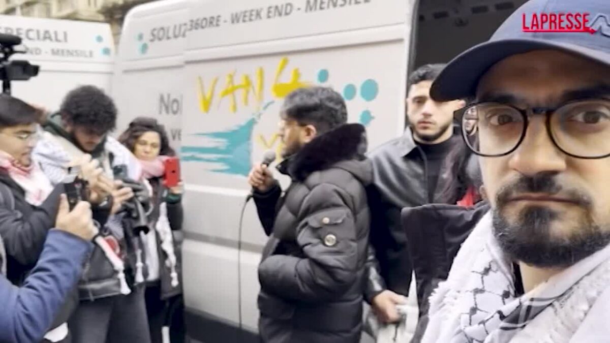 “Se pensano di fermarci mettendo in carcere i nostri fratelli e mio padre, si sbagliano grosso, ci sono milioni di Mohammad Hannoun al mondo. Sono bravi a far rispettare le leggi che gli fanno comodo, ma Netanyahu che è passato due volte sopra il suolo italiano, e che secondo il diritto internazionale dovrebbe essere a marcire in galera, dopo aver ucciso più di 100.000 palestinesi, più di 20.000 bambini, gira il mondo. Mio padre, che ha portato aiuti umanitari, è stato messo in carcere perché a Netanyahu non fa comodo. Non gli fa comodo un popolo cosciente di quello che sta accadendo a Gaza, del genocidio che sta commettendo. Continuiamo a scendere nelle piazze finché questo criminale, finché l’entità sionista, non verrà smantellata, e Netanyahu verrà messo al suo posto, al posto di dove è mio padre in questo momento, in un carcere a marcire”. Lo ha detto il figlio di Mohammad Hannoun, Mahmoud, durante un corteo a Milano in solidarietà agli attivisti palestinesi arrestati lo scorso 27 dicembre e accusati di aver finanziato Hamas, compreso il padre, presidente dell’Associazione palestinesi in Italia. Davanti alla sede milanese dell’Associazione Benefica di Solidarietà con il Popolo Palestinese, posta sotto sequestro dalla magistratura, i manifestanti hanno attaccato uno striscione con scritto “La solidarietà non è reato, siamo fieri di voi“.
