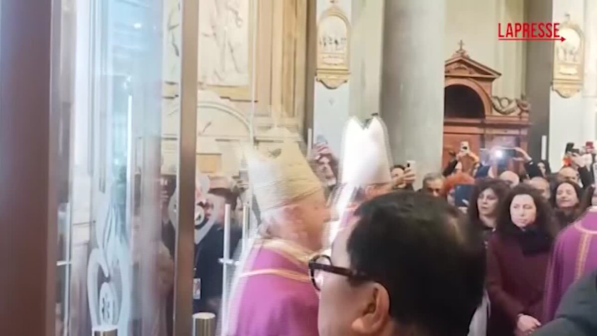 Papa Leone XIV entra nella parrocchia del Sacro Cuore a Castro Pretorio a Roma. Il Pontefice, giunto intorno alle 8.15, è stato accolto dai fedeli e dalle campane a festa.