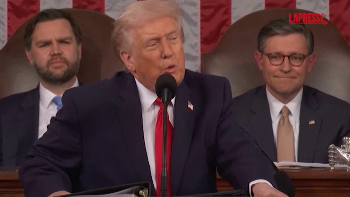 “Gli Usa sono tornati” e vivono una nuova “età dell’oro”: così Donald Trump ha aperto il suo intervento sullo Stato dell’Unione, il più lungo della storia americana con un’ora e 47 minuti, rivendicando una “svolta epocale” nel primo anno del secondo mandato. Il presidente ha difeso la linea economica, a partire dai dazi bocciati dalla Corte Suprema, definendo la sentenza “infelice” e annunciando tariffe alternative che non richiederanno l’approvazione del Congresso. Trump ha ribadito la stretta sull’immigrazione e attaccato i democratici, tra applausi repubblicani e proteste dell’opposizione. In politica estera ha assicurato l’impegno per porre fine alla guerra tra Russia e Ucraina e ha lanciato un monito a Teheran: l’Iran, ha detto, sviluppa missili capaci di colpire Europa e Stati Uniti ma “non avrà mai l’arma nucleare”. Spazio anche al Venezuela, definito “nuovo amico e partner”, e alla promessa di difendere l’America da ogni minaccia, nel tentativo di rassicurare il Paese in vista delle elezioni di metà mandato.