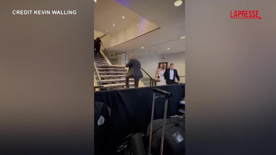 Un video ripreso con un telefono mostra funzionari e ospiti della Casa Bianca che escono di corsa dalla cena dopo la sparatoria al gala di Washington di sabato sera. Un uomo armato di pistole e coltelli ha tentato di oltrepassare il perimetro di sicurezza all’interno dell’hotel di Washington, dove il presidente Donald Trump stava per parlare alla cena della White House Correspondents’ Association. L’uomo armato si è diretto verso la sala da ballo dell’hotel fermato poi dagli agenti dei servizi segreti, mentre gli ospiti si riparavano sotto i tavoli. Il filmato mostra diversi agenti di polizia e agenti dei servizi segreti che scendono le scale fino alla sala da ballo urlando “Muoviti! Muovetevi! Muoviti!” e istruendo le persone a scendere.